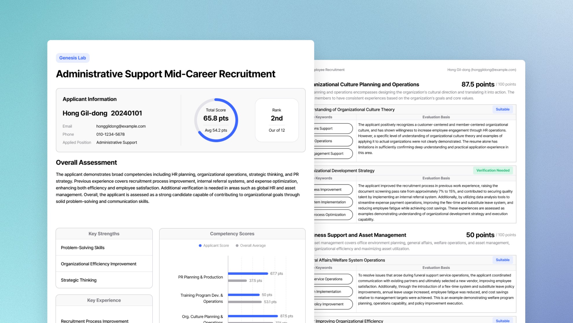 We train the model with data directly evaluated and labeled from real interview data by verified interview experts. Just like having multiple interviewers review together, it combines the results of several evaluation models to make the final decision.