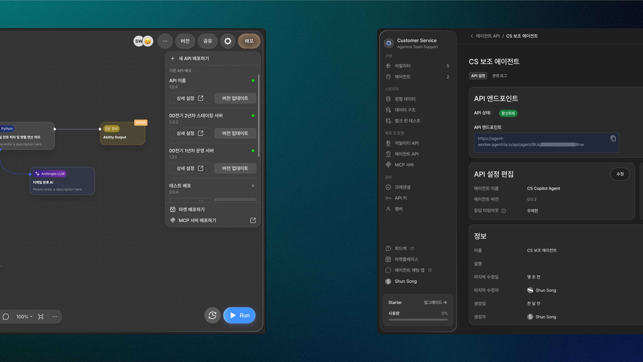 에이전트는 한번에 완성되지 않습니다. 현장에서 사용하며 계속 조정해야 정확해집니다. 수정할 때마다 개발팀을 거쳐야 한다면, 그 속도만큼 운영 품질이 저하됩니다.