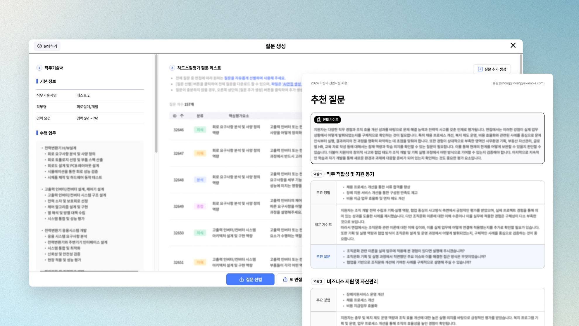 평가 결과가 어떤 기준으로, 어떤 과정을 거쳐 나왔는지 언제든 확인할 수 있습니다. 사람의 평가와 AI 평가를 함께 비교·검증하며 일관된 기준을 유지합니다.